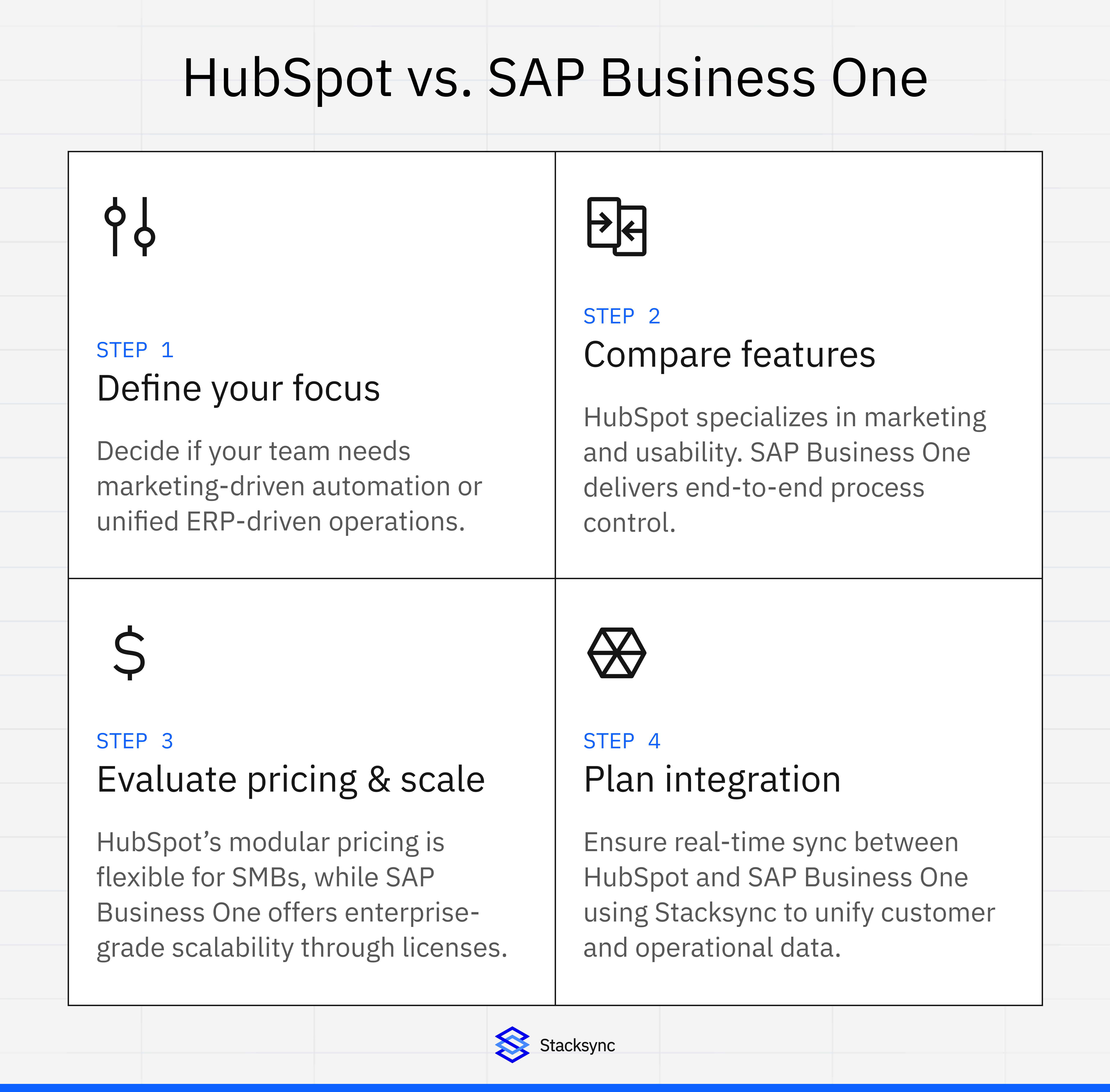 HubSpot vs SAP Business One CRM in 2025: explore differences in scalability, pricing, and automation. HubSpot leads in ease of use and marketing automation, while SAP Business One excels in ERP-driven workflows and data centralization. Learn which fits your company size and industry needs and how to maintain perfect sync between both.